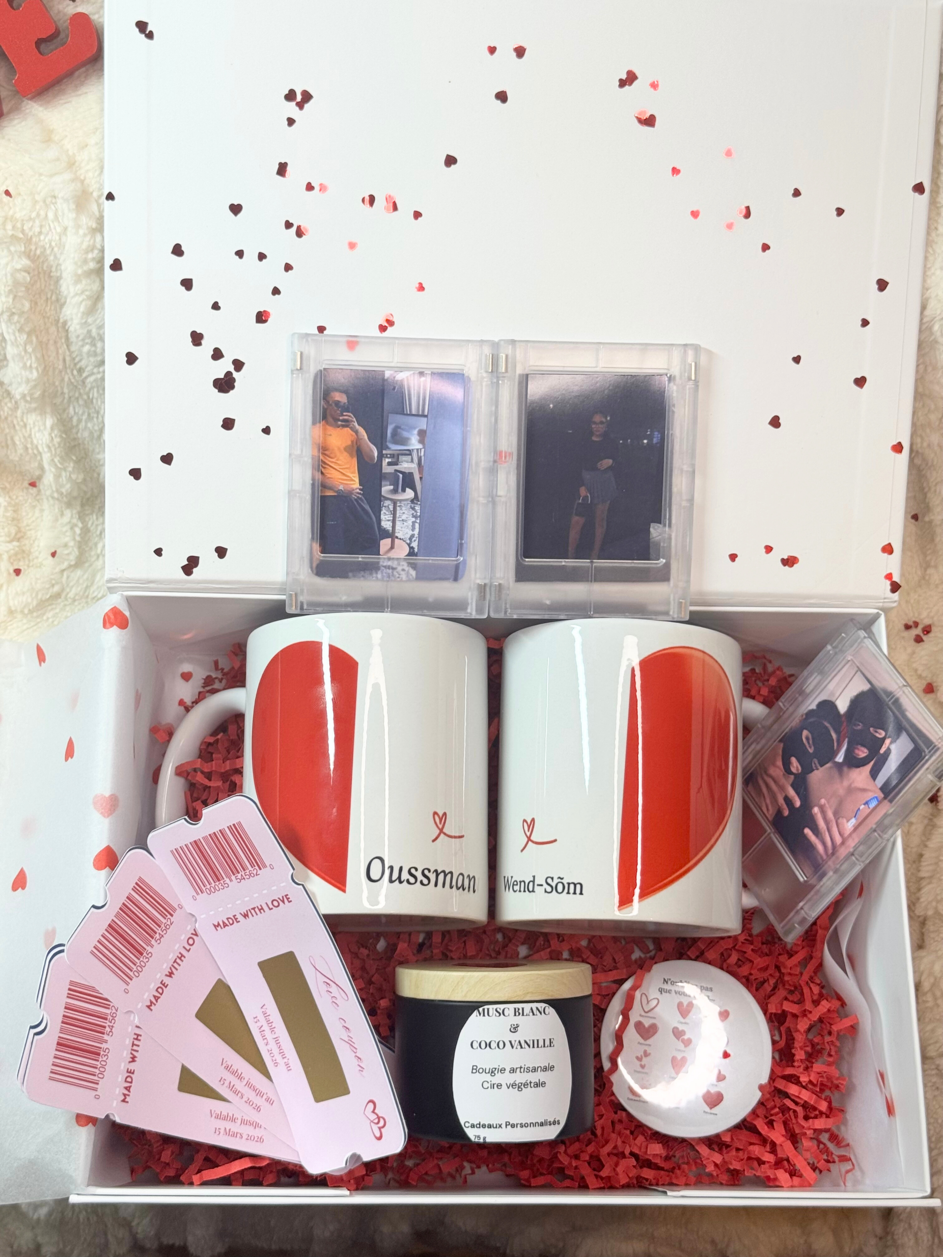Coffret romantique personnalisé idéal pour couple.